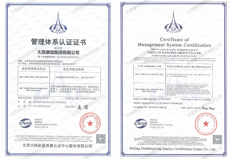 公司現(xiàn)有施工機(jī)械2000余臺(tái),在太原、忻州、晉中、運(yùn)城等7個(gè)地市有苗木基地,擁有從花卉苗木培育到園林景觀綠化測(cè)繪施工再到養(yǎng)管維護(hù)的園林景觀綠化和生態(tài)環(huán)境修復(fù)全產(chǎn)業(yè)鏈,完成和參與了包括省、市重點(diǎn)工程在內(nèi)的1000余項(xiàng)園林景觀綠化、道路綠化、城市改造、市政工程和生態(tài)環(huán)境綜合治理工程,施工足跡遍布全省,超百項(xiàng)工程獲得國(guó)家、省、市優(yōu)質(zhì)工程表彰,通過(guò)了ISO9001質(zhì)量管理體系認(rèn)證。